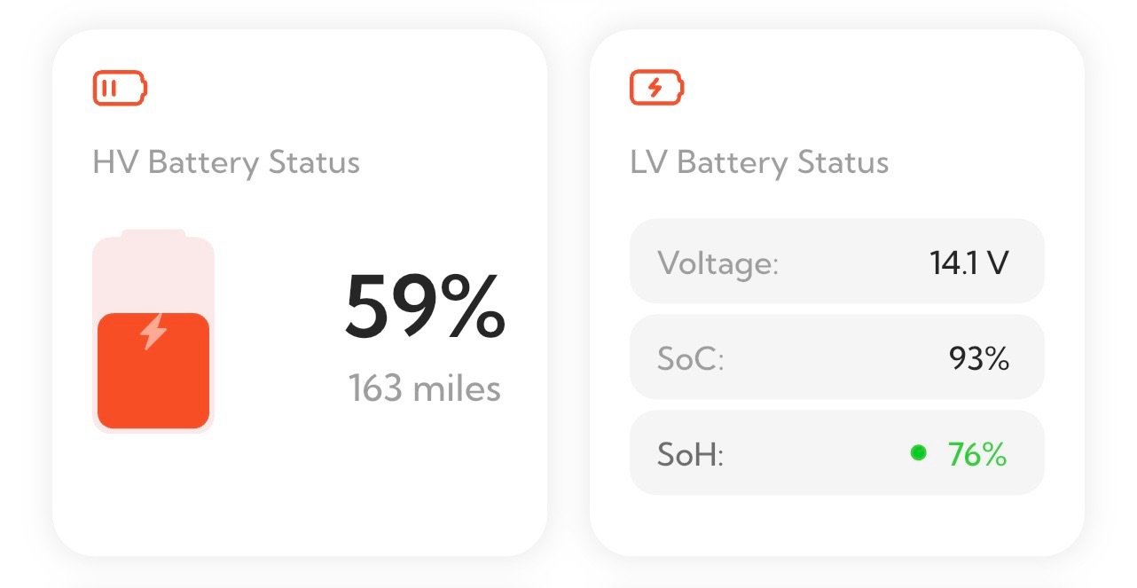 - HV Battery Status: Now I can the status of the range battery from the phone.